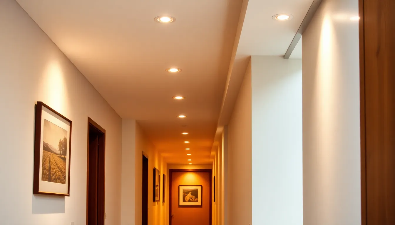 Recessed lighting provides a sleek and modern look. These fixtures fit seamlessly into the ceiling, creating a clean appearance. Typically, they deliver focused illumination ideal for narrow spaces. Lights often feature adjustable trims, allowing individuals to direct beams toward artwork or architectural details. For energy efficiency, choose LED options with dimmable features. Installation can be straightforward, ensuring minimal disruption to existing decor. This approach promotes a spacious feel while enhancing visibility.